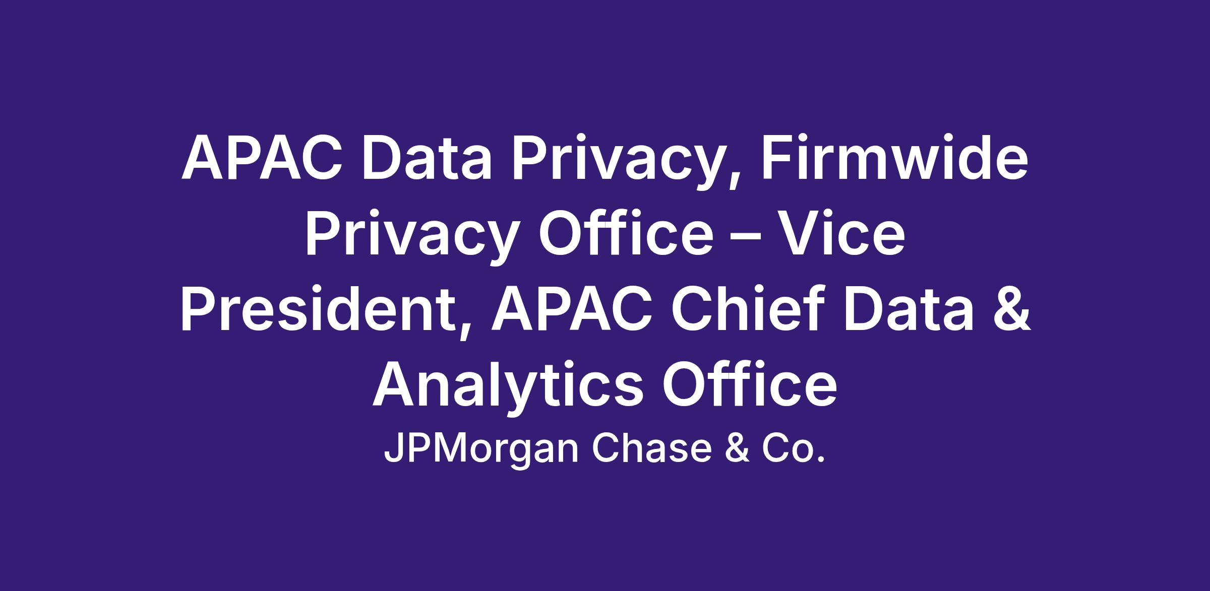 APAC Data Privacy, Firmwide Privacy Office – Vice President, APAC Chief Data & Analytics Office