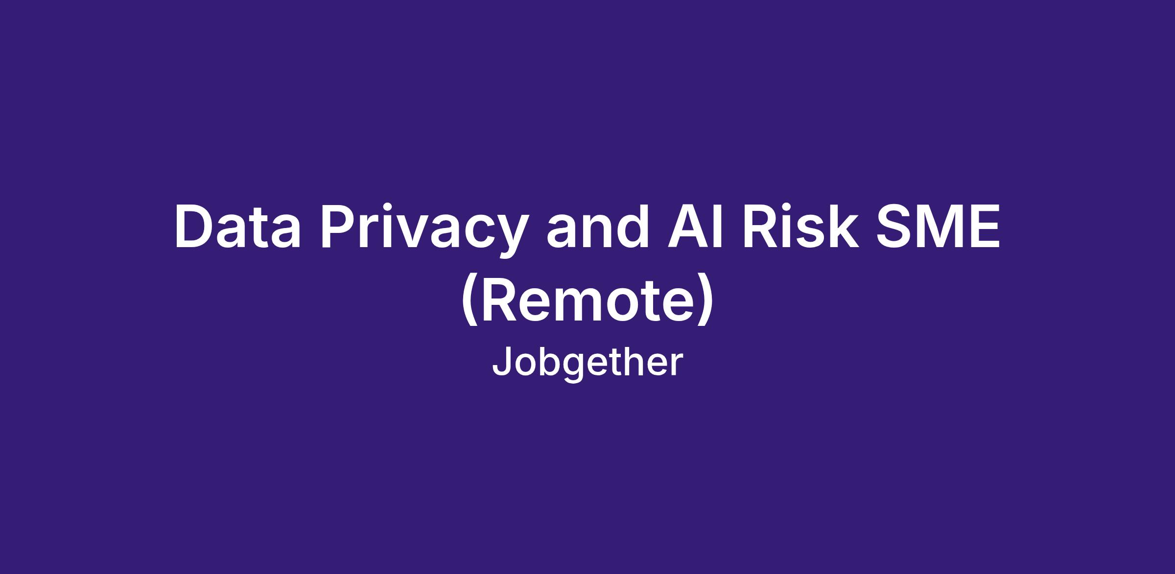 Data Privacy and AI Risk SME (Remote)