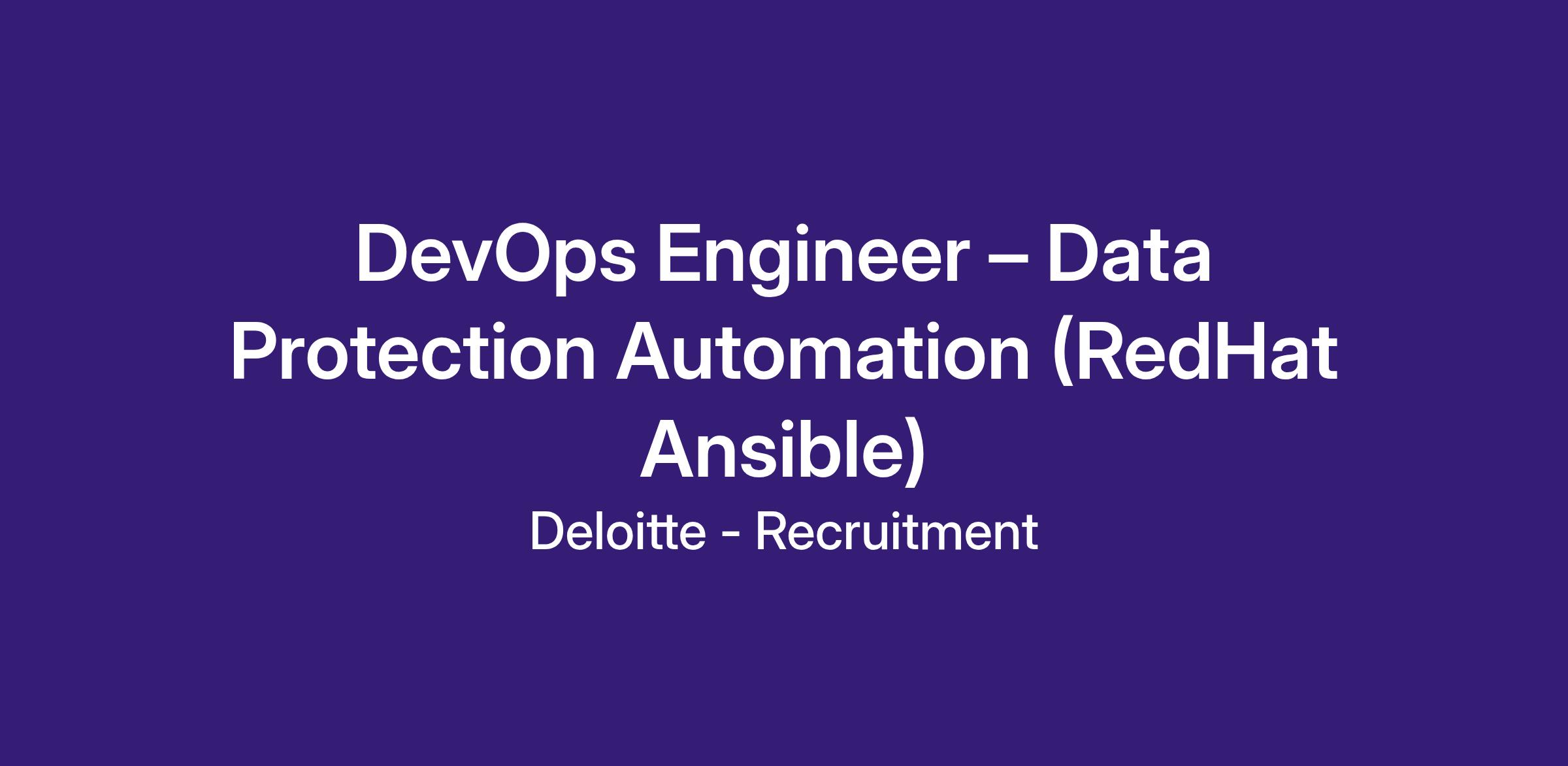 Contract Role Title: DevOps Engineer – Data Protection Automation