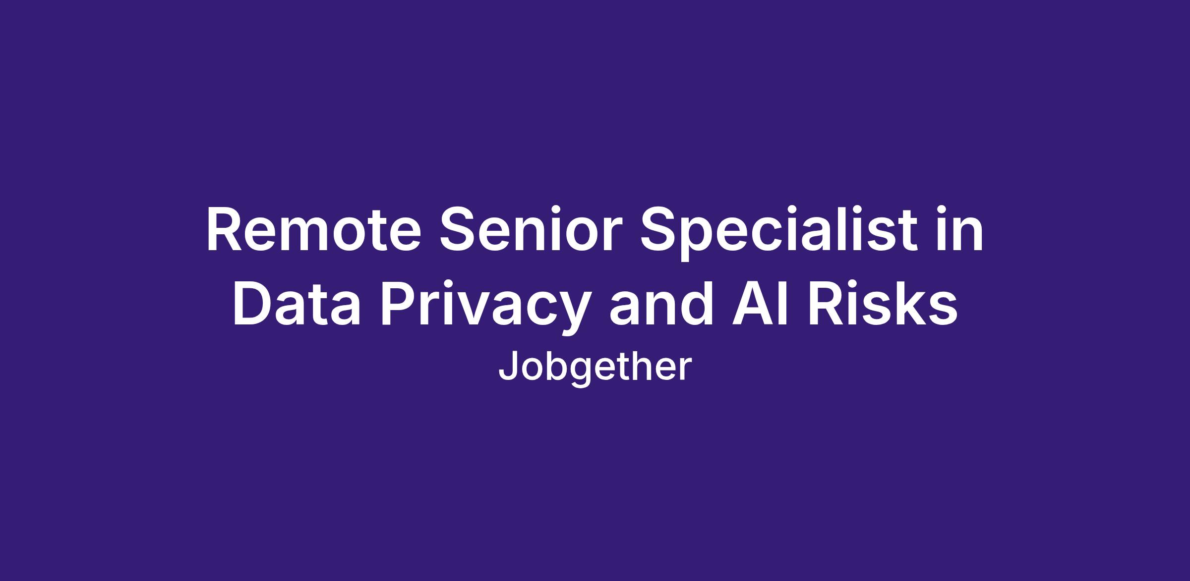 Remote Senior Specialist in Data Privacy and AI Risks
