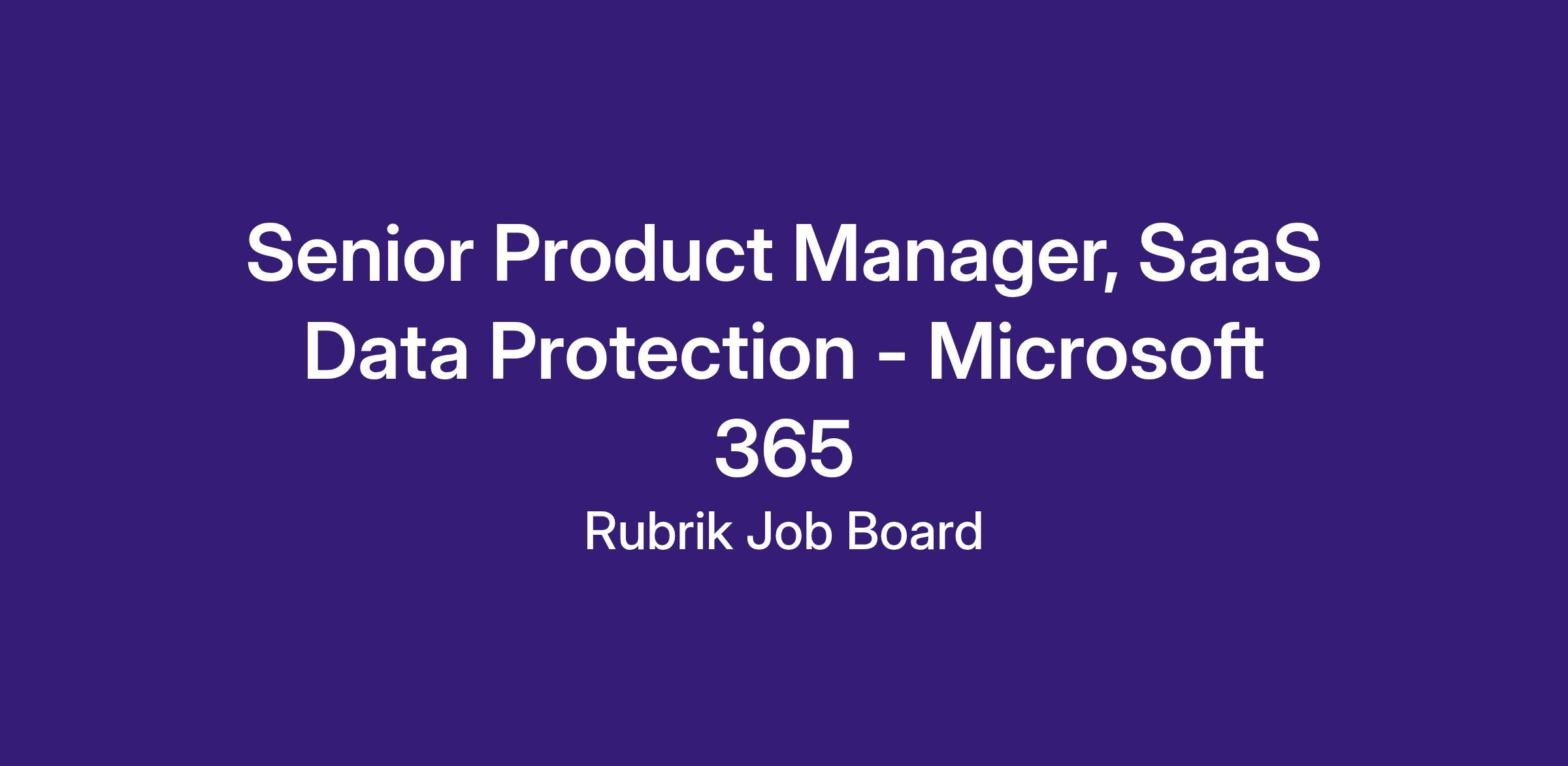 We are seeking a Senior Product Manager to lead key product areas within Rubrik’s Microsoft 365 Data Protection portfolio, one of the fastest-growing and most strategic businesses at Rubrik. This role will focus on building and scaling backup, recovery, and security capabilities across Microsoft 365 workloads such as Exchange, OneDrive, SharePoint, and Teams.